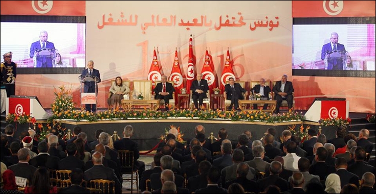 زووم - أشرف رئيس الجمهورية الباجي قايد السبسي اليوم الأحد غرة ماي 2016 بقصر المؤتمرات بتونس العاصمة على موكب الإحتفال بع ...