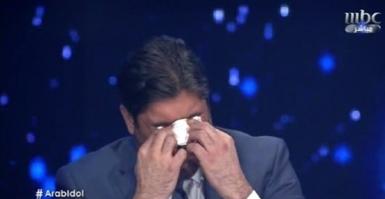 انهار النجم اللبناني وائل كفوري باكيا خلال أداء المشترك الفلسطيني هيثم خلايلي في برنامج Arab Idol موال &ldq ...