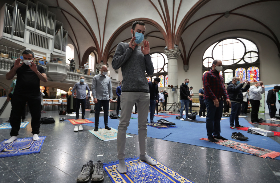 تستضيف كنيسة في برلين مسلمين غير قادرين على صلاة الجمعة في مسجدهم بسبب قواعد التباعد الاجتماعي.