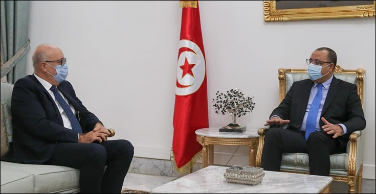 زووم - استقبل رئيس الحكومة هشام مشيشي صباح اليوم الجمعة 08 جانفي 2021 محافظ البنك المركزي التونسي مروان العباسي بحضور وز ...