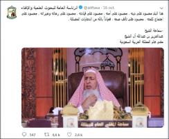 نشرت الرئاسة العامة للبحوث العلمية والإفتاء عبر موقع تويتر قولة لمفتي السعودية جاء فيها "هذا البلد محس ...