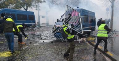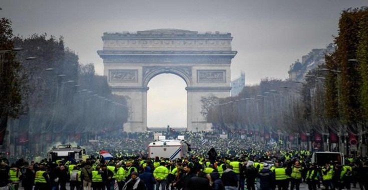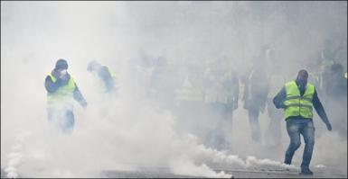 احتجاجات السترات الصفراء: حالة من الفوضى في باريس والشرطة تستخدم الغاز المسيل للدموع ( فيديو)