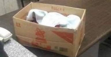 تسلم والد احد الرضع المتوفين بقسم الولدان بالمستشفى الجهوي محمد التلاتلي جثة ابنه في علبة كرتونية.