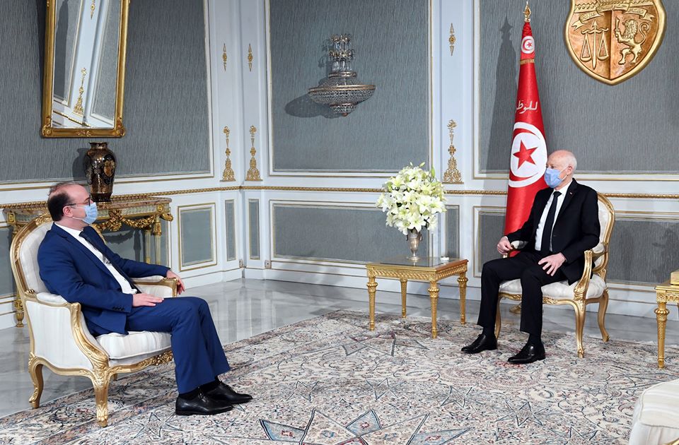 استقبل رئيس الجمهورية قيس سعيّد يوم الثلاثاء 28 أفريل 2020 بقصر قرطاج رئيس الحكومة إلياس الفخفاخ.