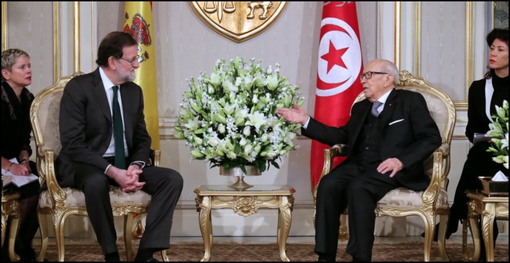 استقبل رئيس الجمهورية الباجي قايد السبسي، يوم االاثنين 26 فيفري 2018 بقصر قرطاج، ماريانو راخوي Mariano Rajoy Brey، رئيس ...