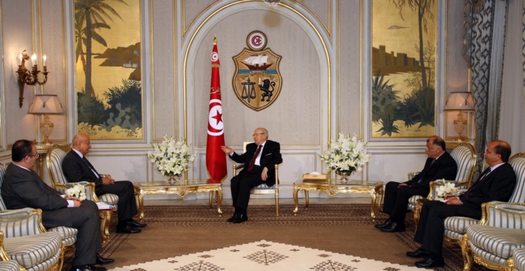 التقى رئيس الجمهورية الباجي قايد السبسي صباح اليوم السبت 16 أفريل 2016 بقصر قرطاج رئيس حركة النهضة راشد الغنوشي.