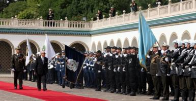 أشرف رئيس الجمهورية الباجي قايد السبسي اليوم الإثنين 18 أفريل 2016 بقصر قرطاج على موكب الإحتفال بالذكرى 60 لعيد قوات ...