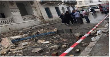 سقطت شرفتين من أحد العمارات المتداعية للسقوط بنهج الاطلس بمنطقة باب الخضراء بتونس العاصمة اليوم الاثنين 21 ماي 2018. ...