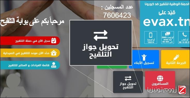 زووم - أفادت وزارة تكنولوجيات الإتصال، مساء اليوم الاثنين، أنّه أصبح بإمكان الوافدين على تونس والمتحصلين على جواز التلقيح في البلدان الأجنبية من تحويله إلى جواز تلقيح تـونسي عبر خدمة "تحويل جواز التلقيح" المتوفرة حاليا بمنظومة إيفاكس، على الرابط التالي: