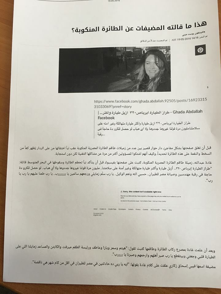 هذا ما قاله زملاء طاقم الطائرة المصرية المنكوبة قبل ان تُغلق صفحاتهم على الفيس بوك !!