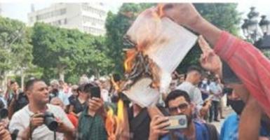 شارع بورقيبة: مناصري قيس سعيد يضرمون النار في الدستور