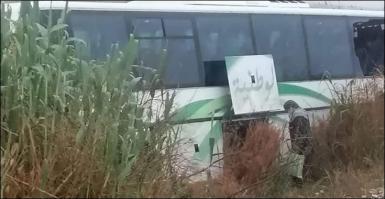 (صور) انزلاق حافلة للشركة الوطنية للنقل بين المدن القادمة من نفطة في اتجاه العاصمة
