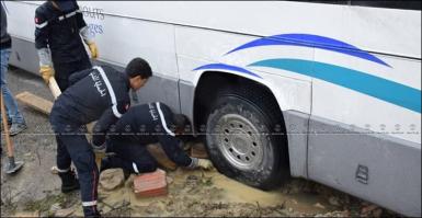 زغوان ..حافلة سياحية على متنها حوالي 50 مسافرا تغرق في الأوحال بسبب الأمطار