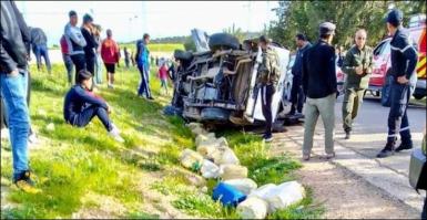 ساقية سيدي يوسف ..انقلاب سيارة تهريب بنزين تُسفر عن وفاة سائقها وإصابة 3 أشخاص