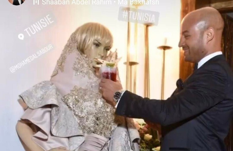 ونشر آل صبور صورة رفقة دمية مرتدية اللباس الذي ظهرت به إيمان الشريف في مهرجان الجونة الذي تعرّف عليها فيه حينها.