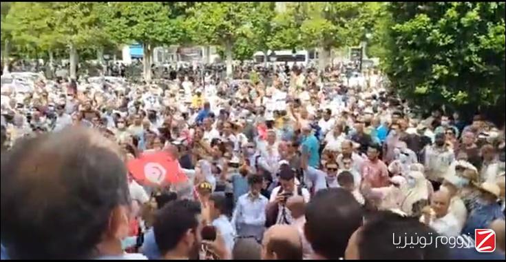 تجمّع اليوم السبت 18 سبتمبر 2021، عدد من المواطنين أمام المسرح البلدي بالعاصمة في وقفة احتجاجية، نددوا فيها بالاجراءات الاستثنائية التي اقرها رئيس الجمهورية قيس سعيد في 25 جويلية المنقضي.