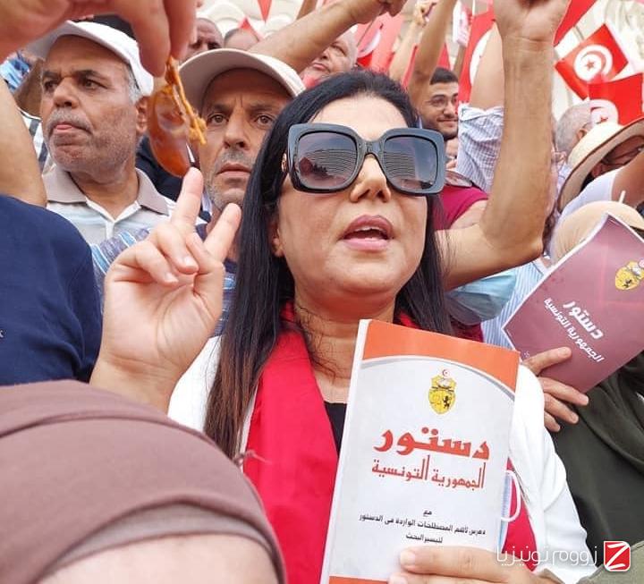 زووم - شاركت النائب الأوّل لرئيس مجلس نوّاب الشعب سميرة الشواشي، اليوم الأحد 26 سبتمبر 2021، في التظاهرة الرافضة لقرارات رئيس الجمهورية الأخيرة.