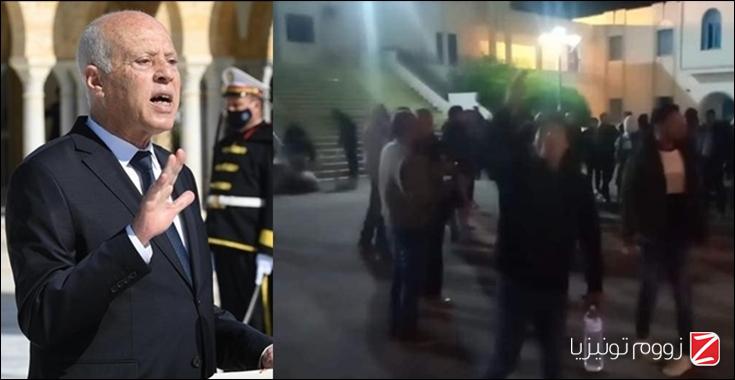 *الصورة من احتجاج عدد من المعطلين عن العمل من أصحاب الشهادات العليا مساء اليوم أمام مقرّ ولاية القصرين.