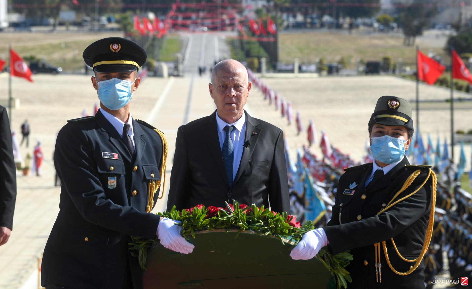 أشرف رئيس الجمهورية قيس سعيد، صباح اليوم السبت 9 أفريل 2022 بروضة الشهداء بالسيجومي بتونس العاصمة، على موكب إحياء الذكرى الرابعة والثمانين لعيد الشهداء.