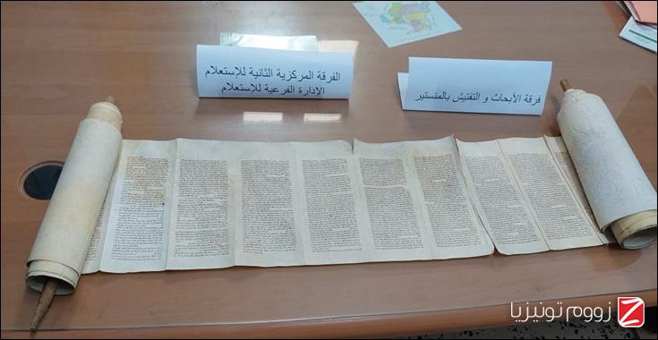 على إثر توفر معلومات صادرة عن إدارة الاستعلامات والأبحاث للحرس الوطني بالعوينة مفادها تحوز شخص على مخطوطة عبرية، تمكنت يوم 26 أفريل 2022 دورية مشتركة بين الفرقة المركزية الثانية للاستعلام وفرقة الابحاث والتفتيش للحرس الوطني بالمنستير من القاء القبض على 04 أشخاص، وفق ماافاد به الناطق الرسمي بإسم الإدارة العامة للحرس الوطني.