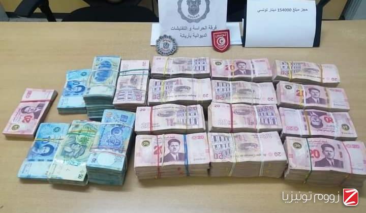 وفي السياق ذاته، تمكنت دورية تابعة لفرقة الحرس الديواني بأريانة إثر الاشتباه في سيارة ذات ترقيم تونسي يقودها مواطن تونسي يعمل بأحد مكاتب الصرف من حجز مبلغ من العملة التونسية قدر بـ 154 ألف دينار مخفي داخل السيارة حيث بسؤاله عن مصدره لم يدل في شأنه بأية وثائق تثبت شرعية مسكه.