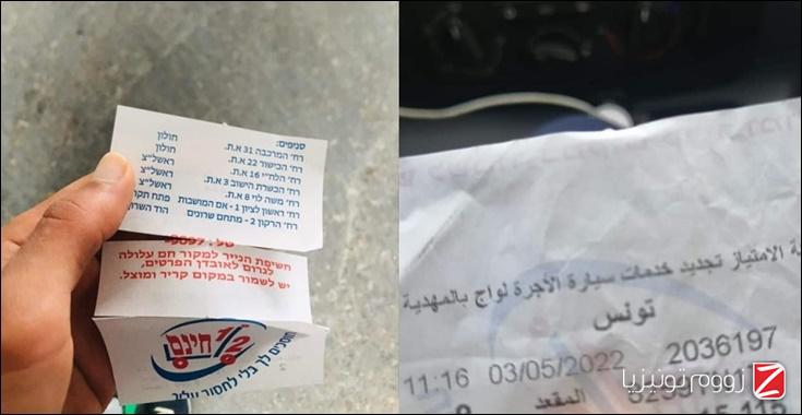 تفاجئ ركاب محطة سيارات الأجرة "اللواج" بولاية المهدية، خلال عطلة العيد، من تذاكر سفر مكتوبة باللغة العبرية على واجهتها الخلفية.