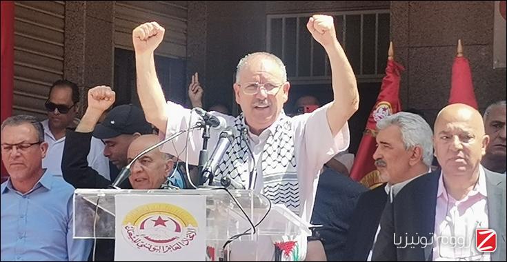 وقال الطبوبي، في كلمة ألقاها أمام تجمّع عمال أمام المقرّ الوقتي للاتحاد العام التونسي للشغل بشارع الولايات المتّحدة بمناسبة الإضراب العام بالقطاع العام: "رفضنا المشاركة في الحوار لأنّنا لا نرى فيه أيّ حلّ لتونس".