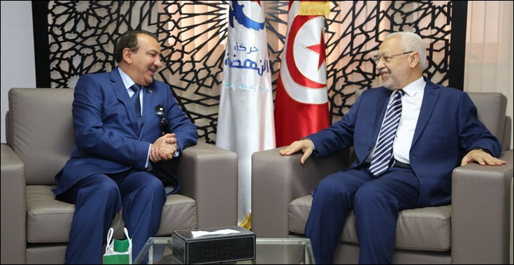 استقبل راشد الغنوشي، اليوم الخميس 05 أفريل 2018، محمد بن محمود العلي سفير المملكة العربية السعودية بتونس