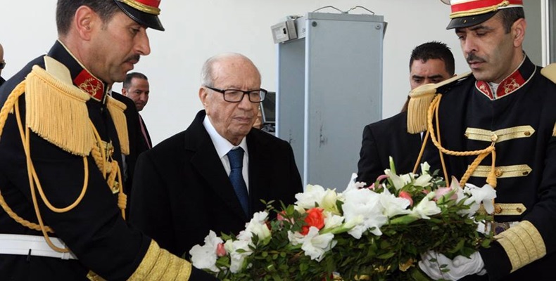 الباجي_قايد_السبسي يضع إكليلا من الزهور أمام مدخل متحف باردو
