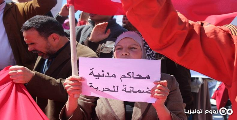 تونس : وقفة احتجاجية مناهضة لأحكام القضاء العسكري في قضايا الشهداء