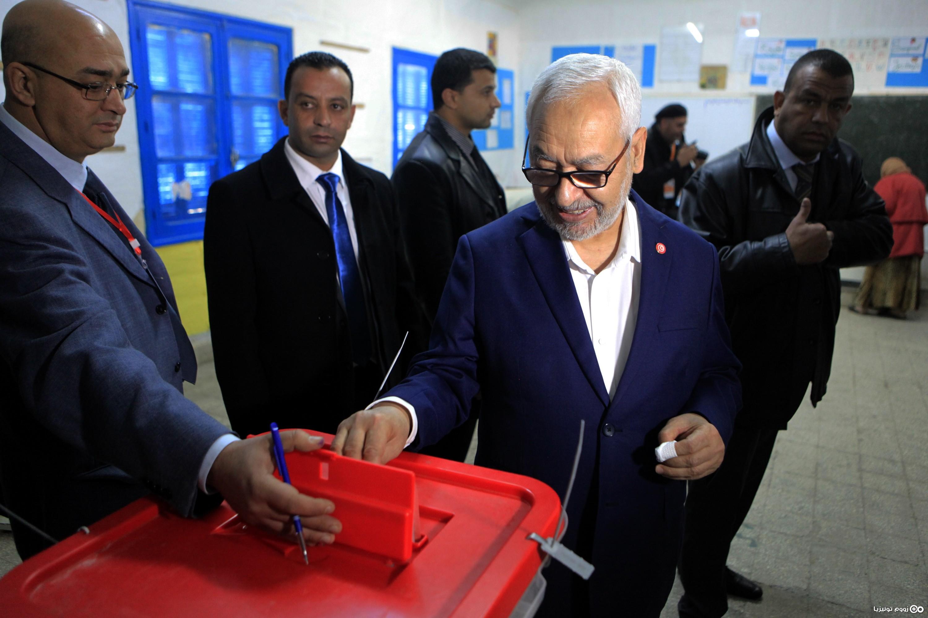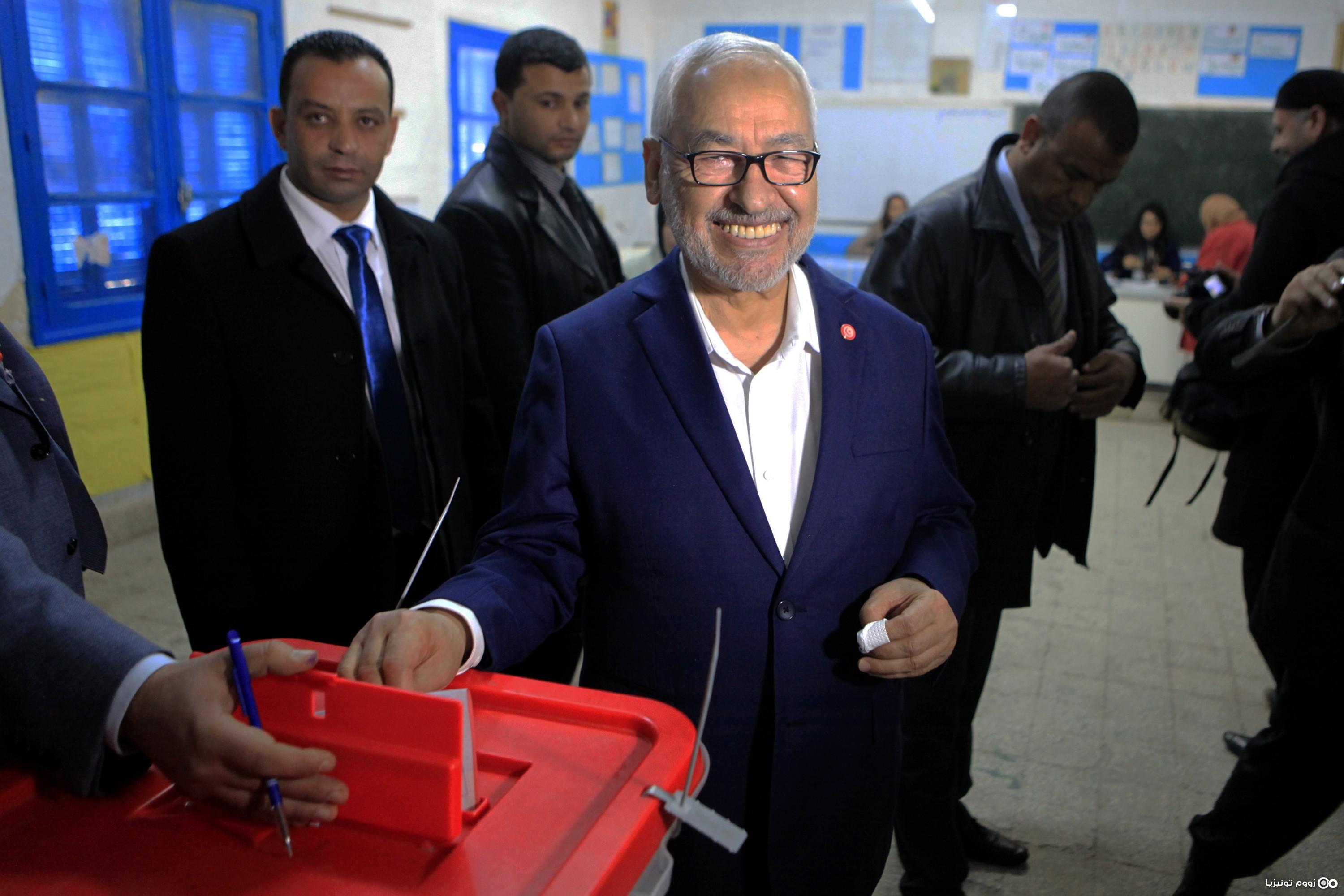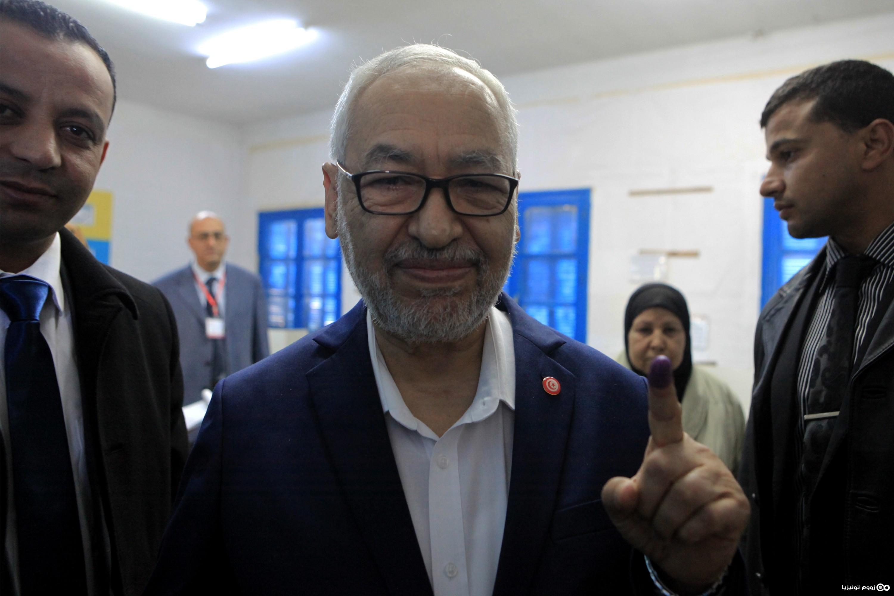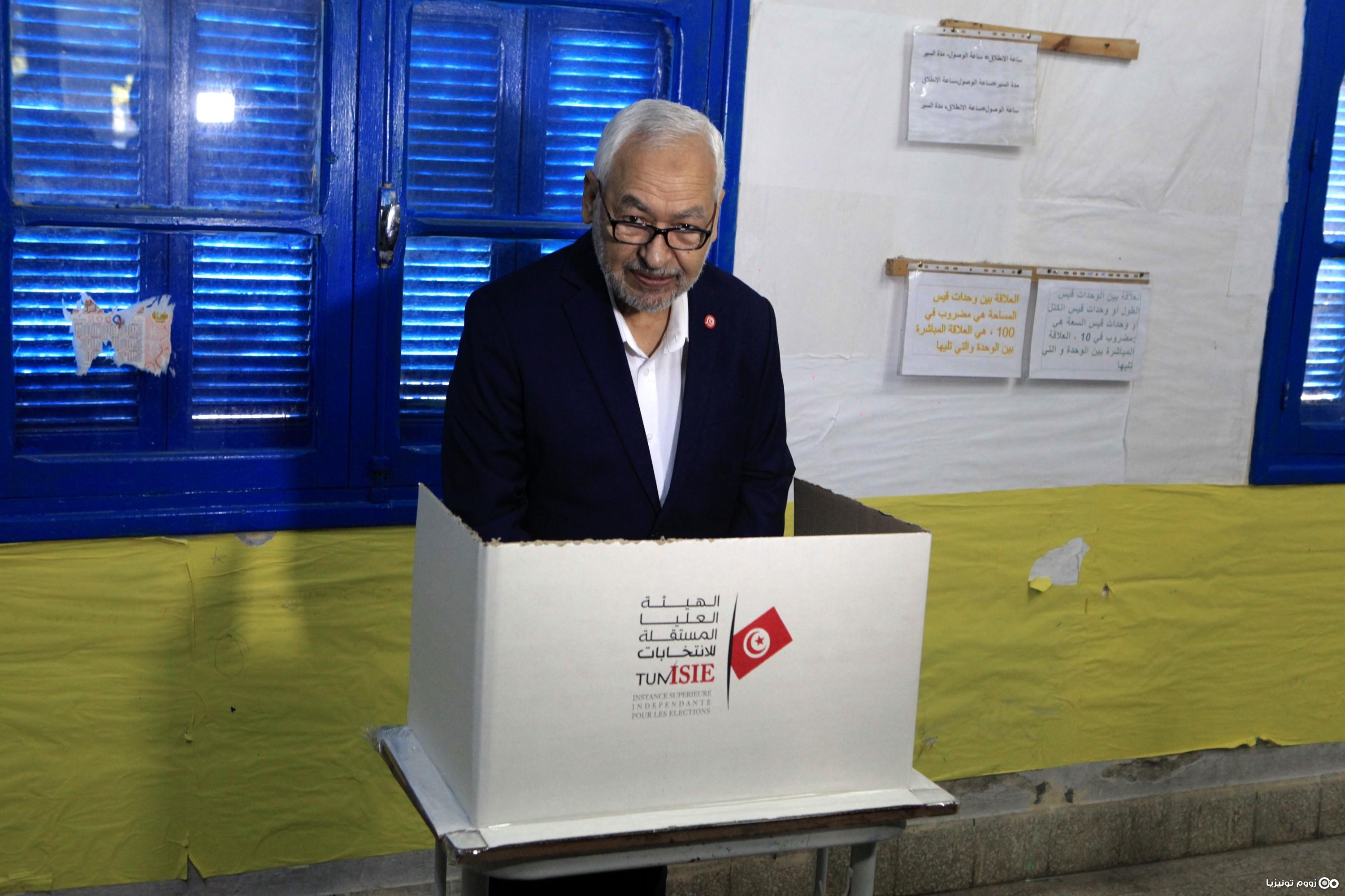 راشد الغنوشي يدلي بصوته بدائرة بن عروس