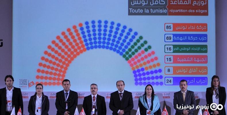 الخميس، 30 أكتوبر، 2014 على الساعة 02:30 اعلن رئيس الهيئة العليا المستقلة للانتخبات، شفيق صرصار(وسط) ،لنتائج الرسمية الكاملة للانتخابات التشريعية التونسية في مؤتمر صحفي، بساعة مبكرة من صباح اليوم الخميس. حيث تصدرت حركة نداء تونس، النتائج الرسمية الكاملة للانتخابات التشريعية التونسية، بحصولها على 85 مقعدا، فيما حصلت حركة النهضة على 69 مقعدا، وحصل الاتحاد الوطني الحر على 16 مقعدا، من إجمالي عدد المقاعد البالغ 217 مقعدا.