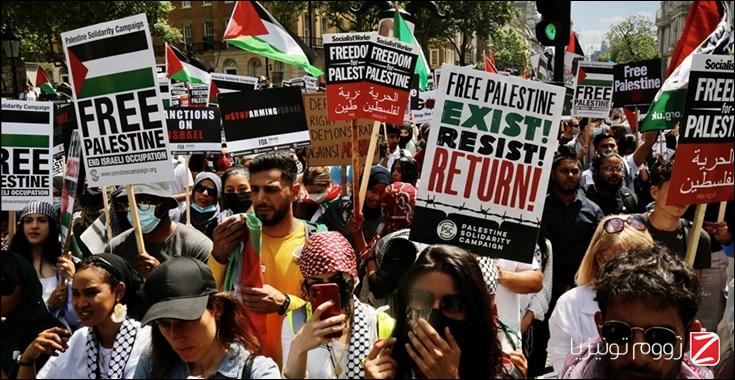 وأفاد مراسل الأناضول، أن عددا من المتظاهرين تجمعوا أمام مبنى رئاسة الوزراء البريطانية في لندن، مرددين هتافات "فلسطين حرة" و "أوقفوا الاحتلال".