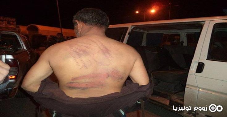 حيث برزت علامات الجلد على ظهر أحد المحتجين و برزت كذلك آثار الضرب على أجساد جل الشباب الذي تم إعتقالهم.