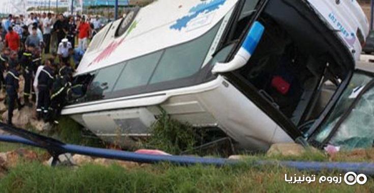 وتتمثل تفاصيل الحادث في اصطدام سيارة تابعة للحرس الوطني بحافلة لنقل تلاميد مدرسة خاصة مما تسبّب في انقلابها.