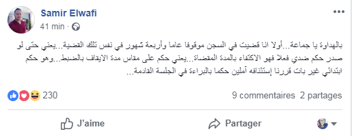 وأضاف سمير الوافي في تدوينة أخرى قائلا "حكم في التوقيت المناسب.. ولكن برنامج وحش الشاشة قادم بإذن الله...وسندافع عن براءتنا بالقانون في الجلسة القادمة في الإستئناف".
