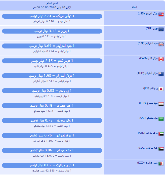 وفي ما يلي أسعار بقية العملات بالدينار التونسي:
