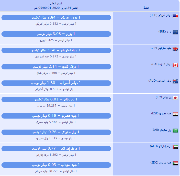 وفي ما يلي أسعار بقية العملات بالدينار التونسي :