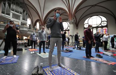 تستضيف كنيسة في برلين مسلمين غير قادرين على صلاة الجمعة في مسجدهم بسبب قواعد التباعد الاجتماعي.