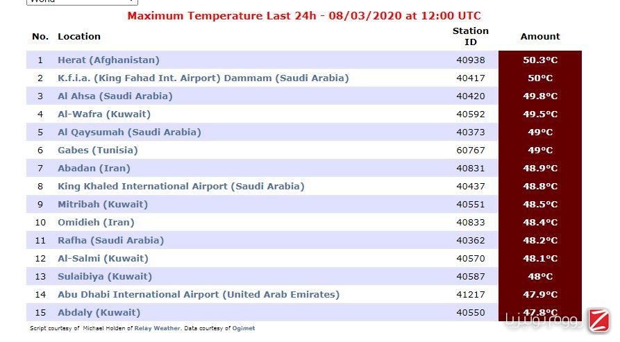 وبذلك جاءت قابس في الترتيب السادس عالميا في أعلى درجات الحرارة المسجلة في العالم، في حين إحتلت مدينة أفغانية المرتبة الأولى.