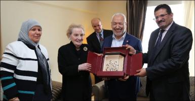 اِلتقى رئيس حركة النهضة، راشد الغنوشي، الخميس 05 مارس 2015، بوزيرة الخارجية الأمريكية السابقة مادلين أولبرايت، على هامش ...