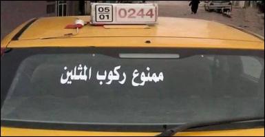 قام أحد سواق التاكسي بمدينة القيروان يدعى محمد علاقي بوضع عبارة على البلور الخلفي لسيارته تتضّمن "ممنوع ركوب المثليين".