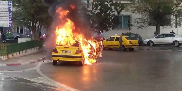 جدّت اليوم حادثة بشارع الحبيب بورقيبة بالعاصمة تمثلت في احتراق سيارة أجرة.