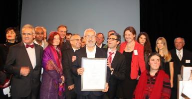 تحصل رئيس حركة النهضة، راشد الغنوشي، اليوم الجمعة 05 ديسمبر 2014، عن جائزة ابن رشد للفكر الحر لسنة 2014 في برلين.