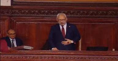 تولّى رئيس حركة النهضة، راشد الغنوشي، أداء القسم باعتباره العضو الأكبر سنّا في المجلس .
