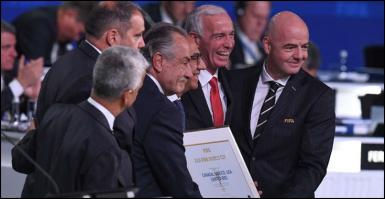 فاز الملف المشترك بين أمريكا وكندا والمكسيك بتنظيم كأس العالم 2026 على حساب ملف المغرب وذلك من خلال عملية التصويت الت ...